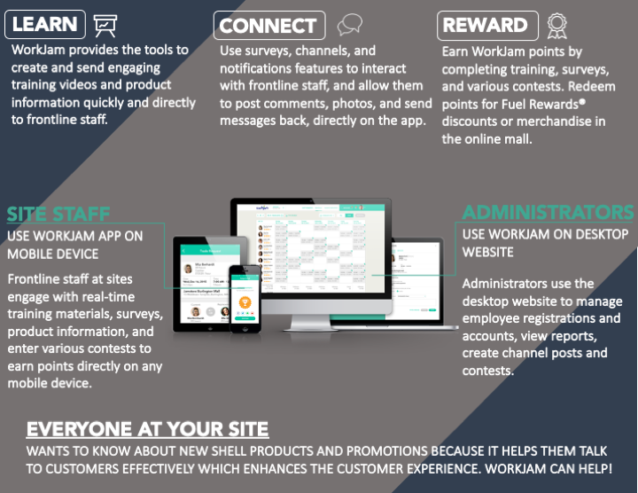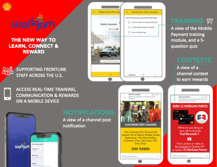 Launched the first-ever site staff engagement app called WorkJam which delivers Shell branded content and training to all site site staff working at Shell gas stations directly on their mobile device.